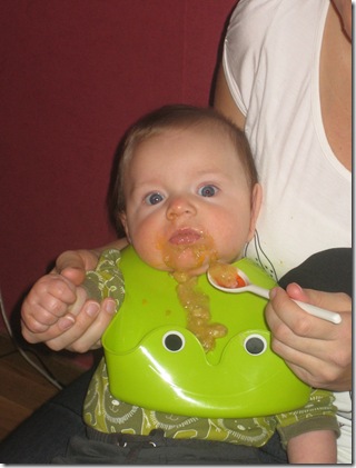 Idag har Alfred smakat på banan för första gången. Det var poppis. Så här såg det ut...